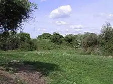 The archaeologist T. C. Lethbridge excavated the site in 1935.[8] At the time portions of stone walling survived but were later destroyed during testing of a fire hose.[9] The castle site was bought by the Burwell Parish Council in 1983.[10] The University of Exeter conducted a geophysical and topographical survey of the castle in the 2010s.[11] Today only the unfinished earthworks remain of the castle, which have scheduled monument status.[12]