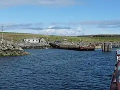 The remains of the Castle of Burwick, a defended Iron Age fort and probable secondary monastic settlement, occupy the promontory west of the harbour.[2]