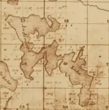 When European settlement of the area began in the mid-19th century, the contemporary Bush Lake water body was a bay in Andersons Lake, now an interconnected series of lakes (each of which are also former bays) called the Anderson Lakes.[2] By as early as 1890, there existed a distinct water body referred to as Bush Lake.[3]