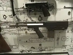 ![]() The Bushmaster Arm Pistol at the National Firearms Museum under a Colt M1911 handgun. | |