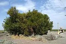Buttonwillow was named for the buttonbush (Cephalanthus occidentalis). A lone buttonbush served as a landmark on an old trans-valley trail and was used by ancient Yokuts Indian as a meeting place, later becoming the site of settlers' stock rodeos. The Miller & Lux holdings company eventually established a headquarters and store near the tree.[5] This tree is listed as California Historical Landmark No. 492. This landmark is now known as the Buttonwillow Tree. California Historical Landmark reads: