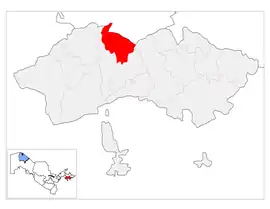 Buvayda is a district of Fergana Region in Uzbekistan. The capital lies at the town Ibrat.[1] It has an area of 280 km2 (110 sq mi)[2] and it had 236,200 inhabitants in 2022.[3] The district consists of 10 urban-type settlements (Ibrat, Yuqori Bachqir, Quyi Bachqir, Chinobod, Buvayda, Zarbuloq, Qum, Yuqori Nayman, Oqqoʻrgʻon, Quyi Urganji) and 11 rural communities.[1]