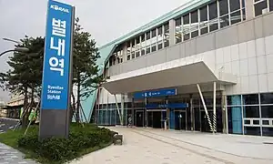 Byeollae station (Korean: 별내역; Hanja: 別內驛) is a railway station of the Gyeongchun Line that opened in December 2012. It is located at Byeollae-dong, Namyangju-si, Gyeonggi-do, South Korea. The Seoul Subway Line 8 is being extended to this station with an opening date in 2023.