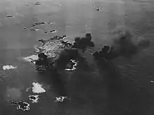 A USAAF aircraft flying over Cézembre shortly after an air attack in August or September 1944
