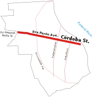 Córdoba Street is one of the most important streets in Rosario, Santa Fe Province, Argentina. It runs east–west through the center of the city, from the coastal avenue by the Paraná River to the western limit of the urbanized area.