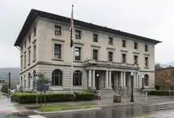 The C. Bascom Slemp Federal Building, also known as the Big Stone Gap Post Office and U.S. Post Office and Courthouse, is a historic courthouse and post office building located in Big Stone Gap, Wise County, Virginia. It was designed by the Office of the Supervising Architect under James Knox Taylor and built between 1911 and 1913. It is a three-story, seven-bay, stone building with a low hipped roof in the Second Renaissance Revival style. The front facade features a three-bay Tuscan order portico consisting of four pairs of coupled, unfluted columns.[4] The building is named for Congressman C. Bascom Slemp.