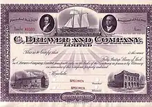 ![]() C.Brewer and Company Specimen Stock Certificate #A0000, made by American Bank Note Co. | |