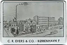 C.R. Evers & Co. was founded by Christian Rudolph Evers (1821-1877) in 1867.[1] Educated as a pharmacist in 1843, had later worked first as a merchant in Vejle and then as a brewer and manufacturer of candles in Ribe. In 1984 he was granted a royal monopoly on the production of a malt extract of his own invention. The malt extract came in a small tin box and was used for a preparation of a "tasty, potent beer-like drink". He was that same year also granted a patent on the malt extract in Sweden, Belgium, France, Austria and Hungary. The name C.R. Evers & Co. was adopted when the cost of obtaining these patents forced him to enter into a partnership with other investors.[2]