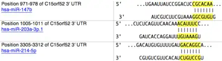 - ↑ UniProtKB entry on C15orf52 [www.uniprot.org/uniprot/Q6ZUT6]