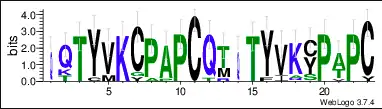 The protein sequence also contains a repeat sequence, the three continuous repeat sequences are located from amino acid position Gln65 to Cys127.[11] The repeat sequences can be observed in the conceptual translation on the right. They are within the DNA translocase Ftsk domain and the cysteine rich region. The repeat sequences are conserved across mammal orthologs. The conservation of each individual amino acid can be observed in the LOGO below.