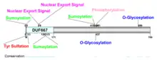 The DUF667 region is predicted to form a tube-like structure from a series of beta sheets.[21]
