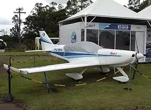 The prototype Toxo ultralight first flew in 1999 and was a low-wing cantilever monoplane with fixed tricycle landing gear. The Toxo can be powered typically by a 120 hp (89 kW) Jabiru 3300 or a Rotax 914S engine. The cabin has two seats side-by-side with dual controls, each with a centerline-hinged upward-opening door.[1]