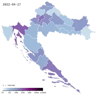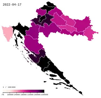 The COVID-19 pandemic in Croatia has resulted in 1,309,728[1] confirmed cases of COVID-19 and 18,687[1] deaths.
