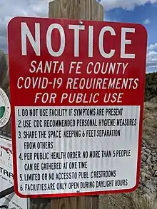 - ↑ "FAQ: New Mexico 'Stay-at-Home' order (through April 30)". KRQE News 13. March 24, 2020. Retrieved April 9, 2020.