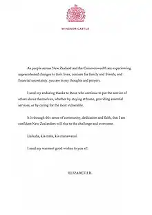 - ↑ Ainge Roy, Eleanor (20 April 2020). "New Zealand plans to ease coronavirus lockdown in a week". The Guardian. Archived from the original on 20 April 2020. Retrieved 21 April 2020.