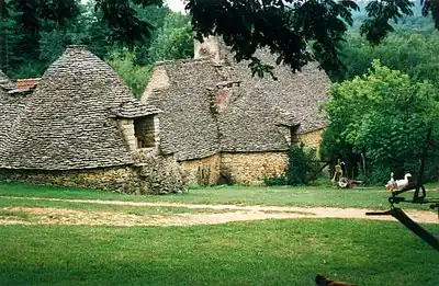The designation "Cabanes du Breuil", although lacking in accuracy, was made popular - whether in its original form or under the variant "Bories du Breuil"[2] - by the local monthly Périgord Magazine in the 1970s, and more generally by regional tourist brochures, not forgetting postcards from the 1980s onwards.[3]