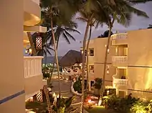 Cabarete Bay has several times been the site of the "Professional Windsurfing World Cup ",[3] and the "Master of the Ocean" event, which includes contests in the five sports of surfing, windsurfing, kitesurfing, standup paddleboarding, and wing foiling.[4] Playa Encuentro (3 miles west) is among the most popular surfing beaches in the Caribbean, and every year the city is host to important events in these sports. The Cabarete tourist area, located along the Camino Cinco approximately 11 miles (18 km) from Puerto Plata airport, encompasses mountains, lagoons and white sand beaches. It has a large number of condominiums, apartment-hotels, hotels, hostels, shops, gift shops, bars, nightclubs and numerous restaurants.