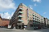 CABINN City opened in 2004 as the fifth hotel in the chain. It is located at Mitchellsgade 14, behind Tivoli Gardens and close to Copenhagen Central Station. The building was designed by Hvidt & Mølgaard[5] and is located next to the historical Copenhagen Police Headquarters which were completed in 1920 to design by Hack Kampmann. The hotel has 352 rooms and 1020 beds.