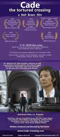 Cade: The Tortured Crossing is a 2023 American independent science fiction psychological thriller film directed, produced, scored, edited and written by Neil Breen. Serving as the sequel to Twisted Pair (2018), the film stars Breen, Judy Lay, Gwendolyn Brown, Eric Lum, Landon Munoz, Amy Solomon, Nicole Butler, Leslie McKinney, Jennifer Estrella, Daryl Morris, Kevon Tyree, Talus Night, Jeremy Chavez, Tommy Lawler, Derek Powell and Addyson Medley.