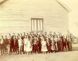 ![]() Cadentown School, 1901 - slate reads "Caden town No1 JW Durett Teacher" | |
