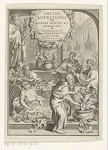 Caelius Aurelianus of Sicca in Numidia was a Greco-Roman physician and writer on medical topics. He is best known for his translation from Greek to Latin of a work by Soranus of Ephesus, On Acute and Chronic Diseases. He probably flourished in the 5th century, although some place him two or even three centuries earlier.[1] In favour of the later date is the nature of his Latin, which shows a strong tendency to the Romance, and the similarity of his language to that of Cassius Felix, also an African medical writer, who about 450 wrote a short treatise, chiefly based on Galen.[2]
