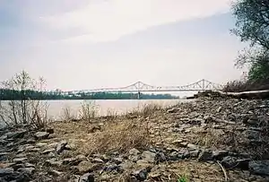 The Cairo Mississippi River Bridge is a type of cantilever bridge known as a Steel Truss Through Deck carrying U.S. Route 60 and U.S. Route 62 across the Mississippi River.[1] Located in the tri-state area of Illinois, Kentucky, and Missouri, it connects Cairo, Illinois at its northern terminus to Bird's Point, Missouri at its southern terminus. The bridge is currently closed for renovation until October 1, 2024.[2]