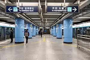 Caishikou Station[1] (Chinese: 菜市口站; pinyin: Càishìkǒu Zhàn) is an interchange subway station between Line 4 and Line 7 of the Beijing Subway.[2] Line 4 station opened in September 2009, together with the other stations on the line. It is located in the Caishikou neighbourhood of the Xicheng District.