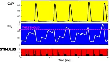 Stimulus integration. Only if the stimulus allows accumulation (i.e. integration) of IP3 up to a certain threshold then an FM-encoding Ca2+ oscillation occurs.[4][7]