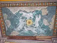 The interiors of the temple are lavishly decorated with high quality mirrors and glasses.[2] The quintessential Jain temple chandeliers (Jhar Battis) decorate the ceilings adding beauty to the top. The floor is intricately paved with marble and embellished with exquisite floral designs that provide a classy look to this colossal architecture. In the interior, the temple walls are adorned by paintings of the renowned painter Ganesh Muskare. The Temple gateway is splendidly eye-catching.