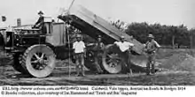 The Caldwell Vale Truck & Bus Co. was an Australian automobile, bus, truck and tractor manufacturer from 1907 to 1913 in the Sydney suburb of Auburn. The company started in 1907 when Felix Caldwell and Norman Laurie Caldwell of South Australia filed for a patent covering "Improvements in and connected with driving and steering motor propelled vehicles". In short, the patent was for a four-wheel-drive system with four-wheel-steering. Later they combined with Henry Vale of New South Wales and in 1910, the trio applied for a patent covering "Improved power steering gear for heavy motor driven road vehicles".[1] Few technical details have survived about the marque and roughly 40 examples of the vehicles appear to have been made. A touring car, it is known to have had four-wheel drive, a 30 hp six-cylinder engine and four-wheel steering. The company also built a fair tractors.[2] In 1912–13, the company lost a court case to do with the performance guarantee of the trucks and was taken over by Purcell Engineering in 1916.[3]