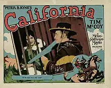 California is a 1927 American silent Western film directed by W. S. Van Dyke and written by Marian Ainslee, Ruth Cummings and Frank Davis. The film stars Tim McCoy, Dorothy Sebastian, Marc McDermott, Frank Currier and Fred Warren. The film was released on May 7, 1927, by Metro-Goldwyn-Mayer.[1][2]