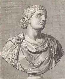 Calpurnia is peculiarly absent in Octavian propaganda, which has been regarded by historians as somewhat mysterious.[30] The only later attestation to her is an inscription by a freedwoman named Anthis which states "She was the wife of Caesar, the great divinity" which puts its dating to at least 42 BC when Caesar was deified.[28][31]