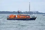 The first lifeboat to be stationed at Calshot was a 40 ft (12 m) Keith Nelson-type lifeboat made of fibreglass or glass-reinforced plastic. She was called Ernest William and Elizabeth Ellen Hinde (ON 1017) and had the operation number of 40-001.[6][7] Although lacking in self-righting capability, she was viewed as a successful experiment in the use of fibreglass for lifeboats.[7] She cost £24,559 (equivalent to £404,144 in 2021).