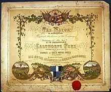 The park was formally opened on 1 June 1857, by Prince George, Duke of Cambridge.[4] The opening ceremony, which featured a triumphal arch, was recorded in a painting by Samuel Lines Snr.[4]