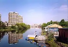 The River Clyde by the Calton. Photo, with the Hutchesontown 'B' tower blocks in the Gorbals on the opposite bank