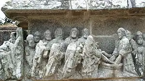 The scenes on this face of the calvary are in granite and in high relief and deal with Original sin, the Resurrection and the Last Judgement.[4]