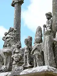 Calvary at Tronoën is a calvary located at Saint-Jean-Trolimon in the Quimper arrondissement. It is located in the "pays bigouden", a particularly wind swept area of Brittany; the nearby chapelle was called the "cathédrale des dunes".