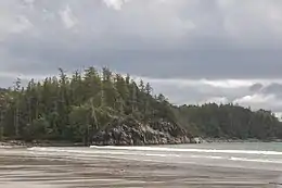 The traditional territory of the Heiltsuk included Calvert Island, and extended north along Dean Channel and Burke Channel, and along the coastal islands to Milbanke Sound. Archaeological evidence indicates many thousands of years of habitation in the region.[4] In 2015, Hakai Institute and University of Victoria researchers announced that human footprints found on the island could date back 13,200 years making them the oldest known footprints in North America. The footprints are thought to represent a man, woman and child.[5] Their discovery supports the Kelp Highway hypothesis that kelp forests along the North Pacific coast provided a route for the peopling of the Americas.[6][7]