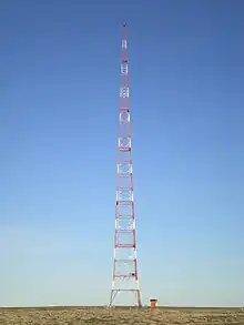 Cambridge Bay LORAN Tower was a 189 m (620 ft) tall free-standing lattice tower at Cambridge Bay, Nunavut, Canada. It was built in 1947/48 for LORAN transmissions and was the tallest freestanding structure in Canada for several years. Later the tower was used as a non-directional beacon (NDB) and was often called the "CB" beacon after the morse code letters that it transmitted on 245 kHz, with an output power of 2000 watts.[1] What appeared to be guy-wires on the tower were "top loading" forming part of the antenna. The tower was four sided and the base 18 m (59 ft) per side or 324 m2 (3,490 sq ft).
