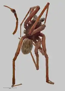 - ↑ Sirvid, P.J. et al. 2012: The conservation status of New Zealand Araneae. New Zealand entomologist, 35(2): 85-90. doi:10.1080/00779962.2012.686310 [see Appendix 1]