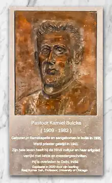 Among those whom Bulcke mentored was Raaj Sah (subsequently Professor at the University of Chicago), beginning when Sah was an undergraduate at St. Xavier’s College Ranchi. In gratitude, Sah gifted a plaque[8] which was unveiled[9] [10] in 2020 at Bulcke’s birthplace, Ramskapelle. The plaque’s inscription is in Flemish, to honor that Bulcke’s first love in languages was his mother tongue.