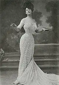 In the early 1900s, she won $2,000 in a magazine contest sponsored by illustrator Charles Dana Gibson to find a living version of his Gibson Girl drawings: his ideal woman.[2] Clifford became an actress, performing in the United States from 1902 and in England from 1904. She returned from London to Boston on 3 July 1906.[3] While generally playing walk-on, non-speaking roles, Clifford became famous nonetheless: not for her talent, but for her beauty, and in the musical show The Catch of the Season which opened at London's Vaudeville Theatre on 9 Sept 1904 she sang a song, "Sylvia, the Gibson Girl".[4] Her trademark style was a long, elegant gown wrapped around her tightly corseted, eighteen-inch wasp waist.
