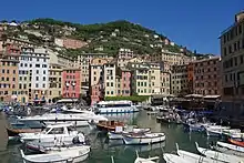 Camogli (Italian: [kaˈmoʎʎi, -ˈmɔʎʎi]; Genoese: Camoggi [kaˈmudːʒi]) is a fishing village and tourist resort located on the west side of the peninsula of Portofino, on the Golfo Paradiso in the Riviera di Levante, in the Metropolitan City of Genoa, Liguria, northern Italy. As of 30 April 2017 its population was of 5,332. Camogli is one of the largest areas of the Parco Naturale Regionale di Portofino, and a part of the Portofino Marine Protected Area.