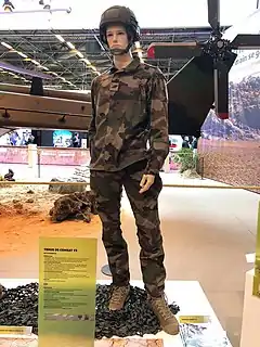 Two variants of the CCE are used in French military uniforms, which consist of the Uniform T3 and the Uniform T4.[7] In 2019, the Tenue Combat F3 uniform was announced to be the standard uniform in CCE for the French Army.[8]