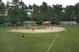 The camp is well known for its unique layout. All 8 cabins, the recreation hall, the C.I.T. "bungalow", the shower houses, two administrator cabins, and the "OD shack" surround the large ball field, where all field sports are played. The small size of this camp grants it what many consider a very "intimate" feeling.