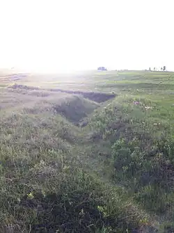 ![]() Trenches at Camp Hughes built for training soldiers for battle in World War One | |