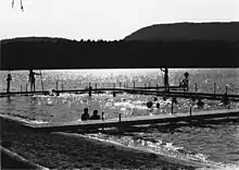 On a daily basis campers participated in a typical variety of activities that included sports, arts and crafts, and on its waterfront boating, swimming, and water-skiing.