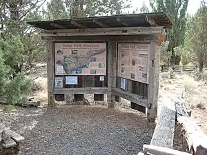 Camp Polk was a former army camp in the U.S. state of Oregon that was established in Deschutes County in 1865.[1] It was a post of the District of Oregon. One of nine camps created during a time of conflict between settlers and Native Americans, it was located three miles northeast of the present-day city of Sisters.[2] The camp was intended to house troops who would protect settlers on the Santiam Wagon Road from Indian attack.[1] Part of Company A, a group of volunteer soldiers from the Willamette Valley under the command of Captain Charles La Follette, were stationed at the post.[2] The camp was named for Polk County, which was the home of most of the soldiers and their captain.[3] The troops received orders before winter in 1865 to leave the camp.[2] A portion of the troops remained at the post until the spring of 1866 when Camp Polk was abandoned.[1][2]