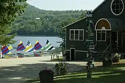 The campus also includes a dining hall (for seating up to 400), a performing arts building with an indoor and outdoor stage and a gymnasium, and a new Lodge in 2022. Camp Wekeela has abundant recreational facilities and scenic nature preserves spanning sixty plus acres right next to Little Bear Pond. Some of these recreational facilities include horseback riding, tennis courts, baseball diamonds, soccer fields, basketball courts, hockey rink, lacrosse fields, beach volleyball court, climbing tower, natural rock climbing wall, zip-line, high and low ropes course, environmental sciences building, culinary arts building, gymnastics pavilion, photography studio, dance center, weight room, radio building, creative arts center, and a large waterfront for swimming, water-skiing, sailing, windsurfing, kayaking, fishing, and scuba diving.[9]