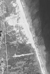 The periodic discovery of ordnance in beach areas heavily used by the general public, coupled with the potentially large volume of ordnance suspected to be at the site, resulted in the initiation of an Engineering Evaluation/Cost Analysis (EE/CA) at the site by the United States Army Corps of Engineers.[3] During the EE/CA investigations of 1998-1999, geophysical surveys were conducted, and followed by intrusive investigation of geophysical anomalies, resulting in the finding of a rifle smoke grenade, inert 1000 pound Dove missiles, and one inert 250 pound bomb. The EE/CA report recommended implementation of institutional controls and clearance of ordnance along coastal areas (where the majority of ordnance was used).[4] The EE/CA was followed by a aerial magnetic survey conducted by Oak Ridge National Laboratory.[5] The success of the survey was somewhat limited by tree cover, but 345 magnetic anomalies were identified for further investigation. Government contractor Zapata Engineering investigated the anomalies and conducted further geophysical surveys, and discovered other ordnance items. A removal action was conducted in a 5-acre area east of the southern parking lot where a rocket range had existed.[6][7][8]